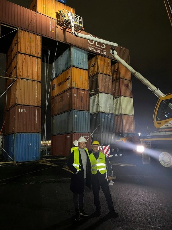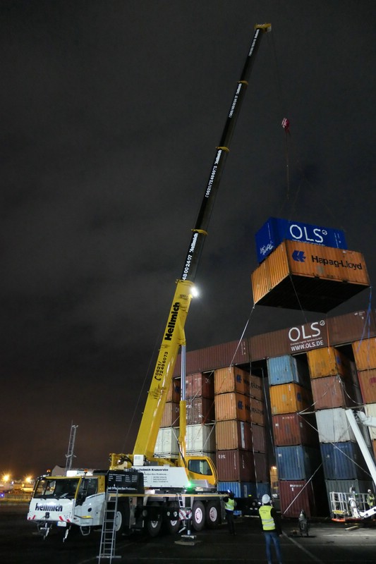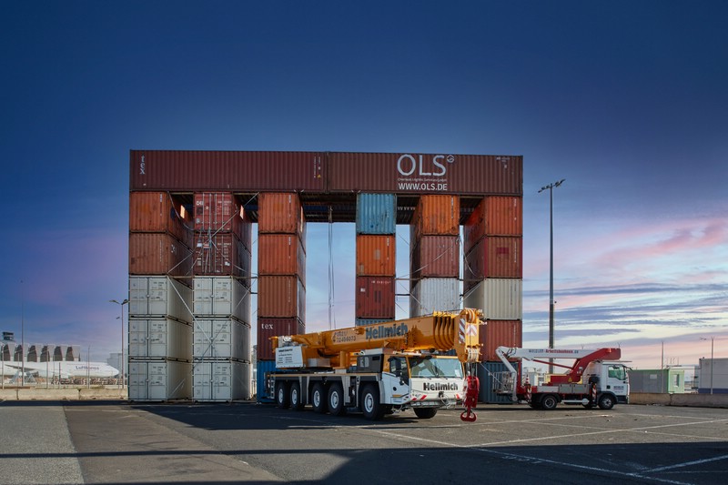 Kunst am Flughafen Frankfurt: Mit unserem neuen Tadano Faun ATF 200G-5 montierten wir bei einem spektakulären Einsatz auf dem Flughafen Frankfurt das „Global Gate“, einem dem Brandenburger Tor nachempfundenen Kunstwerk bestehend aus zahlreichen 40-Fuß-Containern. Die Konstruktion wird am 16.11.2020 verhüllt und ist ein von der Unicef gefördertes Projekt, das wir gerne unterstützen. Nach der Premiere in Frankfurt soll das Kunstwerk rund um den Globus wandern.