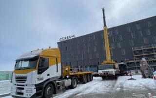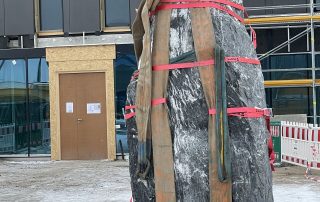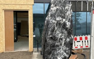 Wir durften bei unserem Nachbarn einen ca. 15t schweren Stein vor den Eingang des neuen COREUM-Hotels setzen. Wir freuen uns schon, wenn es fertig ist. Es sieht toll aus.