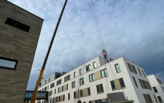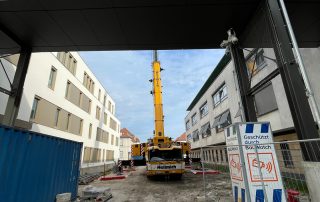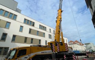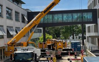 Mainz: In der Uniklinik unterstützen wir die Bauarbeiten beim setzten von Kühlanlagen und Notstromaggregaten.