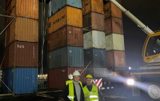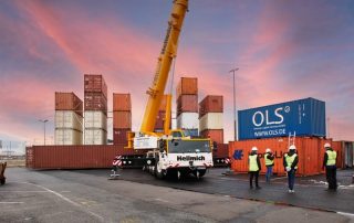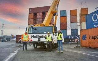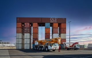 Kunst am Flughafen Frankfurt: Mit unserem neuen Tadano Faun ATF 200G-5 montierten wir bei einem spektakulären Einsatz auf dem Flughafen Frankfurt das „Global Gate“, einem dem Brandenburger Tor nachempfundenen Kunstwerk bestehend aus zahlreichen 40-Fuß-Containern. Die Konstruktion wird am 16.11.2020 verhüllt und ist ein von der Unicef gefördertes Projekt, das wir gerne unterstützen. Nach der Premiere in Frankfurt soll das Kunstwerk rund um den Globus wandern.