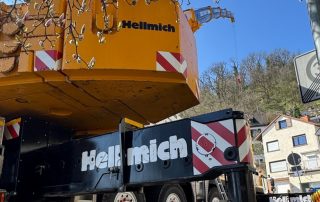 Bei Darmstadt haben wir kürzlich mit 2 Kranen einen Kamin für eine Müllverbrennungsanlage stellen können. Als Hauptkran nutzen wir einen GMK 5120 und als Nachführkran einen HK 4.050. Der Kamin wurde auf einem Telesattel angeliefert, mit beiden Kranen angehoben.