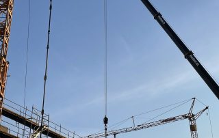 Am frühen Montagabend wurden wir mit zwei Kränen zu einer spektakulären Bergung an den Hessischen Landtag in Wiesbaden angefordert. Bei Bauarbeiten knickte ein ca. 35 m langes Gerüstteil eines 4 teiligen Dachaufbaus ab. Nur durch den vorhandenen Baukran gesichert